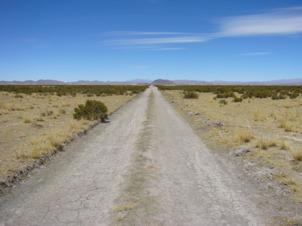 Het eerste deel ging over de Ruta 144, een kaarsrechte tweebaansweg, die soms erg druk was, namelijk op het schaarse moment dat er één tegenligger aankwam, of op het moment dat een voorganger moest worden ingehaald. Verder was de weg zo goed als leeg en het landschap dodelijk saai. En dus reden we 150 kilometer per uur, zelfs op het moment dat we werden gewaarschuwd voor een spoorwegovergang. Met de wetenschap dat er al enkele tientallen jaren geen trein meer in dit gebied rijdt, konden we zonder al te veel omkrijken die waarschuwingen in de wind slaan. Eenmaal op de spoorwegkruizing aangekomen, bleek al over de rails te zijn geasfalteerd.