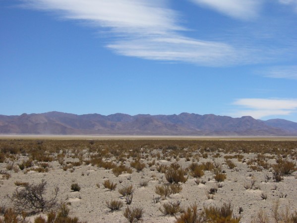 We passeerden enkele borden langs de weg die wezen in de richting van een ‘dorpje’, maar die dorpjes bestonden niet uit meer dan een of twee huizen. Wat bezielt men hier om hier te gaan wonen? We zouden langs twee meren (lagos) rijden en langs “Agua Calientes”, oftewel warm water, maar de meertjes lagen droog en de warme waterbronnen zagen we ook niet. Wel dachten we op een gegeven moment stoom uit de grond te zien komen, maar dat zou ook gerust een stofstormpje kunnen zijn geweest, want opeens was het er en tien minuten later was het weer verdwenen.