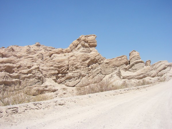 Kilometers verderop reden we door de Quebrada de las Flechas in de buurt van de plaats Angastaco. Langs de kant van de weg zagen we de meest vreemde rotsformaties en die waren schitterend.